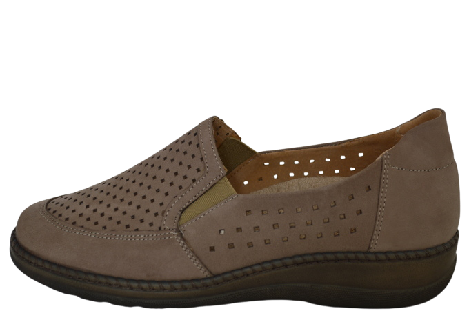 Obuv je celokožená s vyjímatelnou textilní stélkou,výška klínku je 4cm,v nártu jsou všité dvě gumičky pro lepší prozutí.Obuv je perforovaná a vzdušná.Doporučená údržba je impregnace.