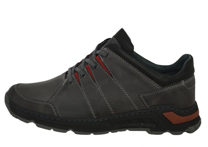 Obuv pánská kožená s ozdobnými červenými prvky.Boty jsou na klasické šněrování.Stélka je tvarovaná.Tato obuv je vhodná k běžnému a každodennímu použití.Doporučená údržba je impregnace.