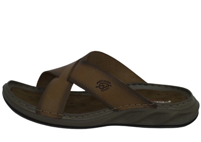 Pánské kožené pantofle ,které se vyznačují svojí lehkostí a pohodlností.Přes nárt jsou kříženy dva kožené pásky.Příjemný měkký došlap.