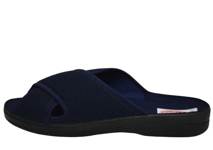 Velice pohodlné pánské domácí textilní pantofle.Na nártu dva překřížené pásky.Stélka je anatomicky tvarovaná.